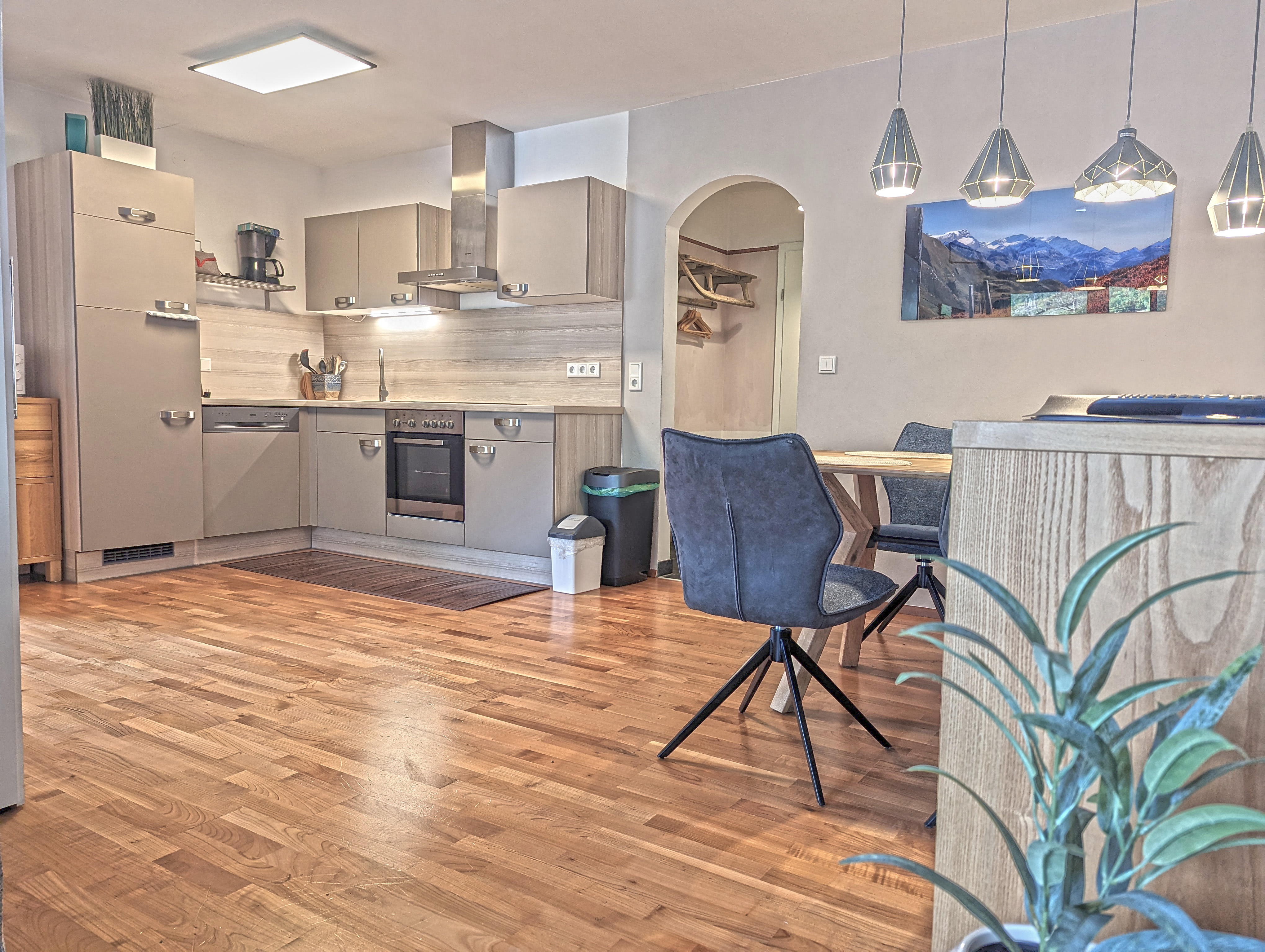 Anyone who is sporty usually has a lot with them. Skis or bikes? No problem. On the ground floor you will find the spacious ski room, which allows bicycles to be safely stored in summer. And – not a given in the region – a parking space directly at the house is part of the apartment.