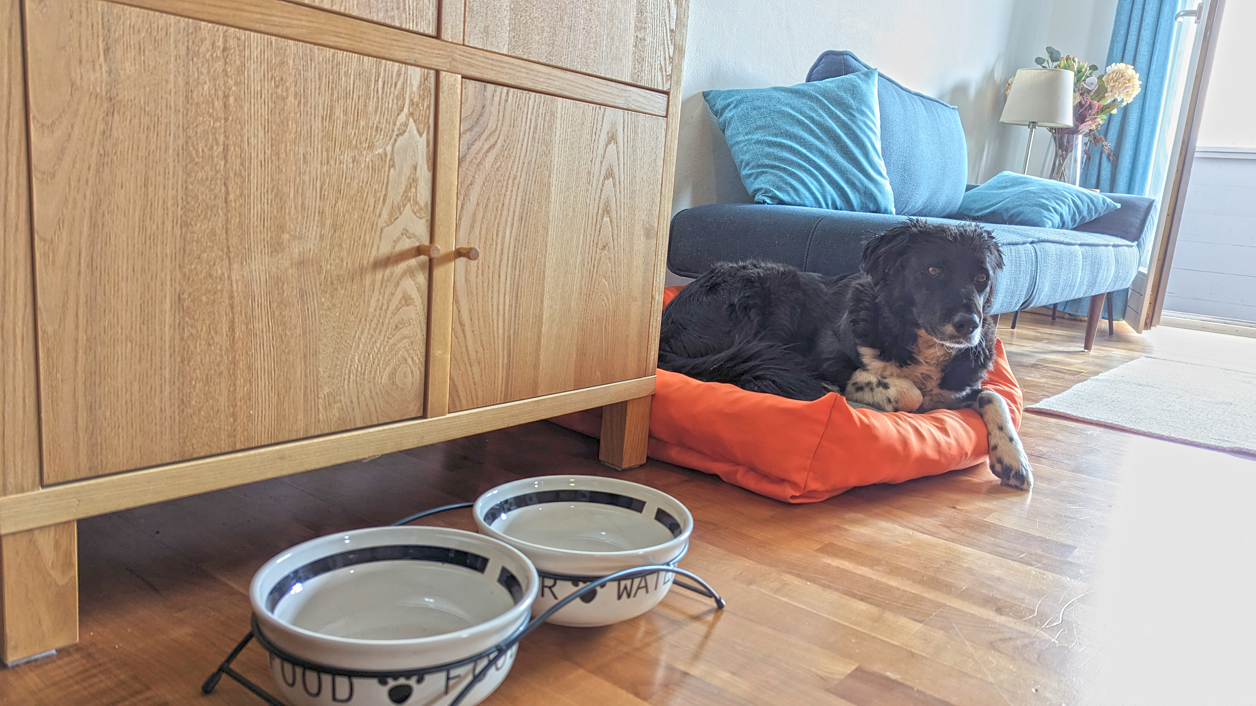 Hundegäste müssen angemeldet werden. Ggfs. fällt eine Pauschale an. Dafür finden Sie Hundebett, Näpfe, Decken und ein Handtuch vor.